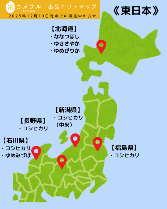 こちらのエリアマップでは、現在販売中のお米の産地をエリアごごとにご紹介しています。