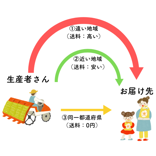 コメフルの送料は、お届け先と生産者(発送元)の地域の距離によって変わります。