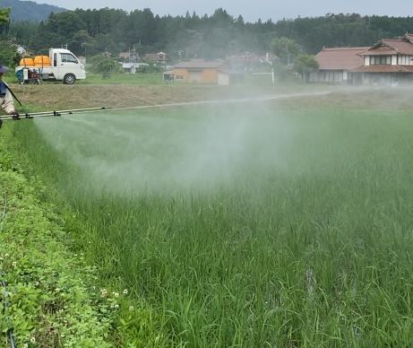動噴を使って葉面散布しています。体にも良い物なので散布溶液がかかっても安心です(人も元気になりそうで)
