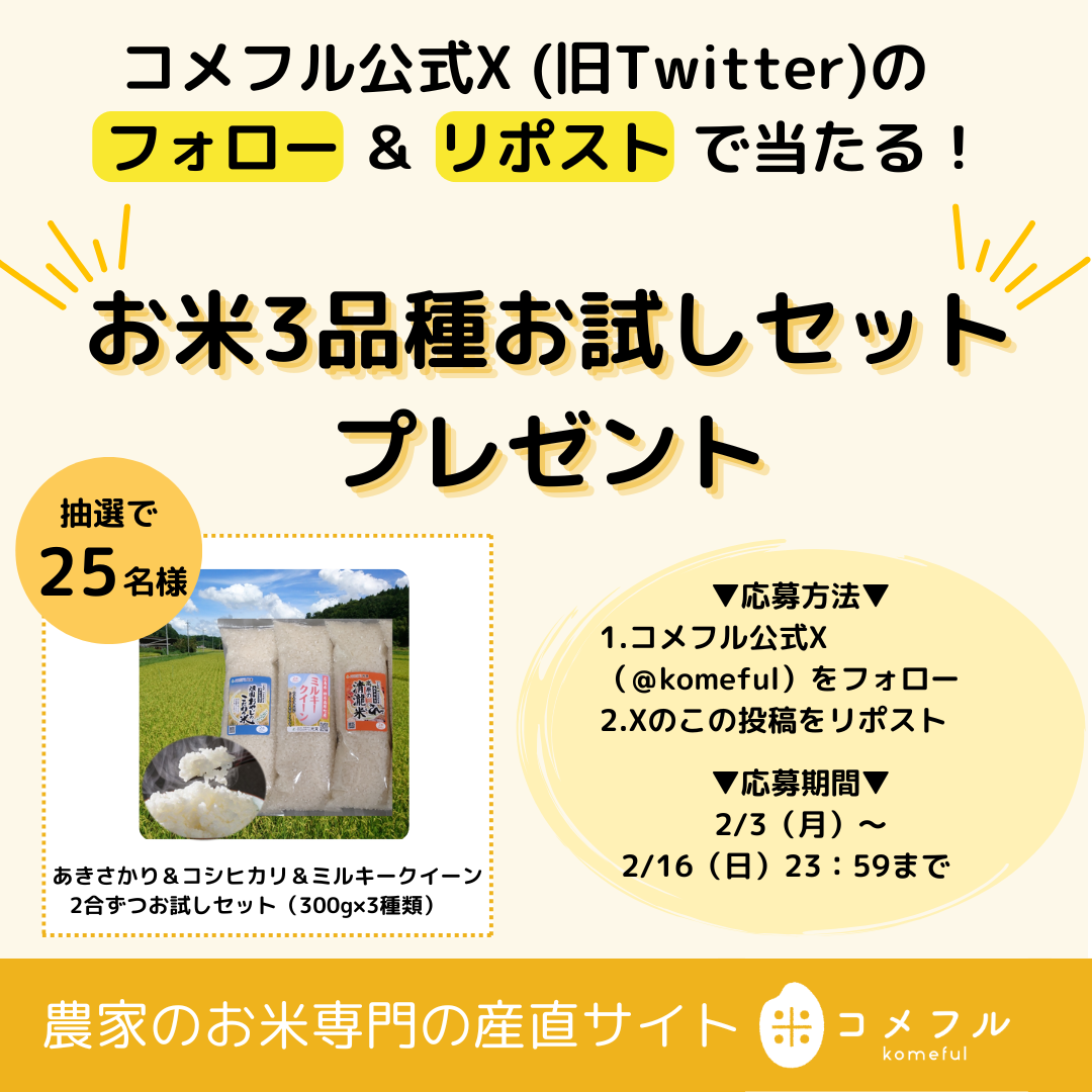 ※終了しました※ コメフル公式LINEにて、2月のお米プレゼントキャンペーンを実施します。 コメフル公式LINEを友…